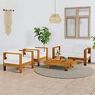 vidaXL Loungegrupp för trädgården med gräddvita dynor 4 delar akacia