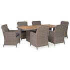 vidaXL Have Spisebordssæt 7 Dele med Hynder Brun Rattan