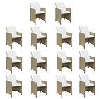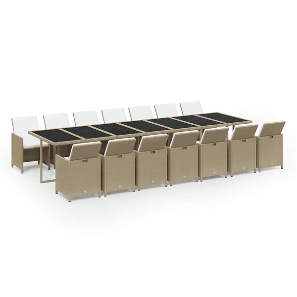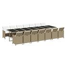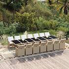 vidaXL Matgrupp för trädgården med dynor 15 delar konstrotting beige