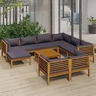 vidaXL Loungegrupp för trädgården med dynor 10 delar massivt akaciaträ