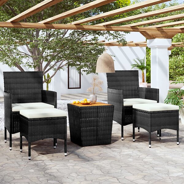 vidaXL Caféset för trädgården 5 delar konstrotting och akacia svart