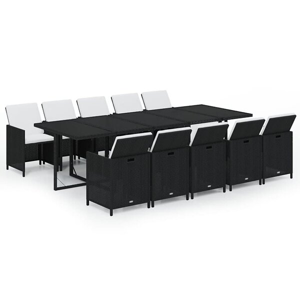 vidaXL Matgrupp för trädgården med dynor 11 delar konstrotting svart