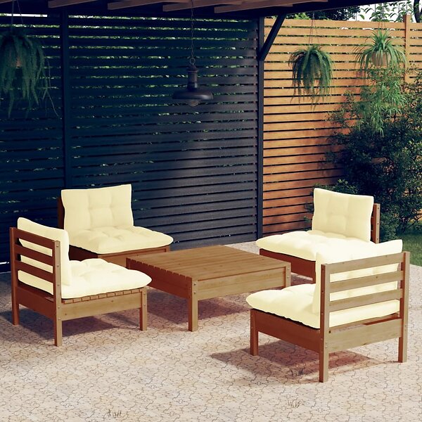 vidaXL Loungegrupp med gräddvit dynor 5 delar massiv furu