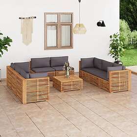 vidaXL Loungegrupp för trädgård dynor mörkgrå 9 delar massivt teakträ