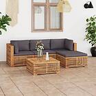 vidaXL Loungegrupp för trädgård dynor mörkgrå 5 delar massiv teak