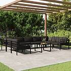 vidaXL Loungegrupp för trädgården 10delar med dynor aluminium antracit