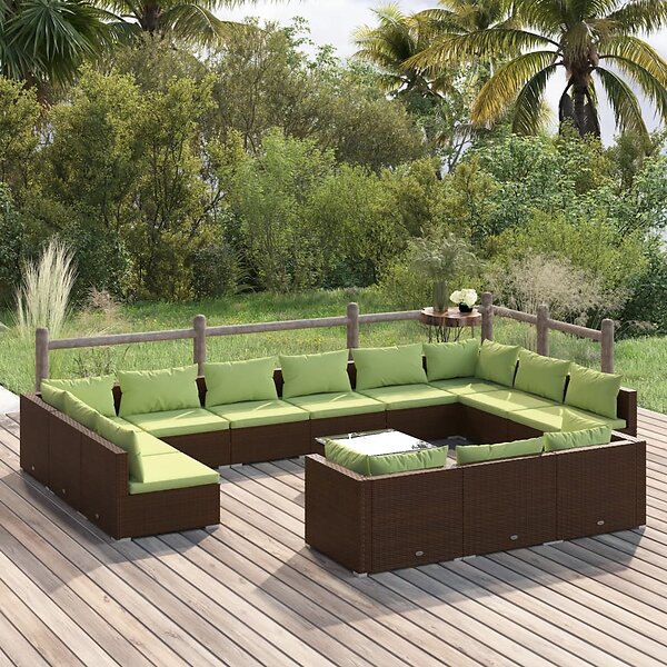vidaXL Loungegrupp för trädgården med dynor 14delar brun konstrotting