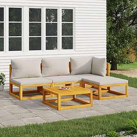 vidaXL Loungegrupp för trädgården 5 delar ljusgråa dynor massivt trä