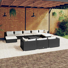 vidaXL Loungegrupp för trädgården m. dynor 11 delar svart konstrotting