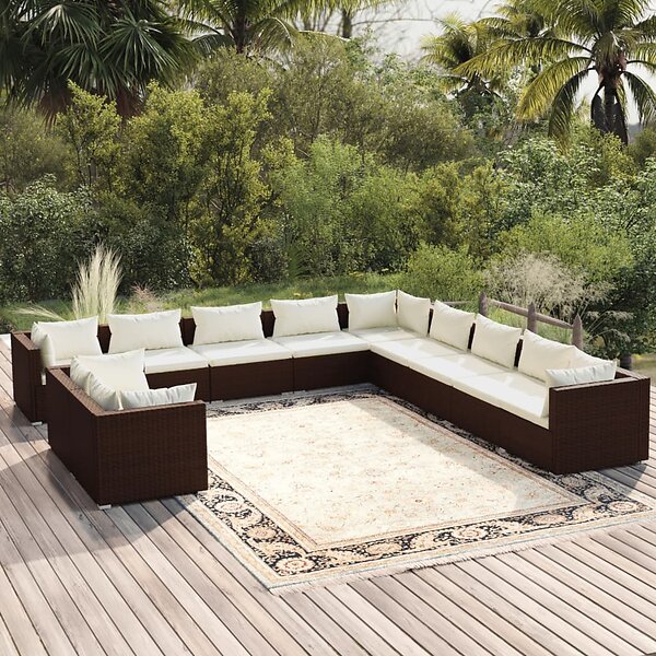 vidaXL Loungegrupp för trädgården m. dynor 11 delar brun konstrotting