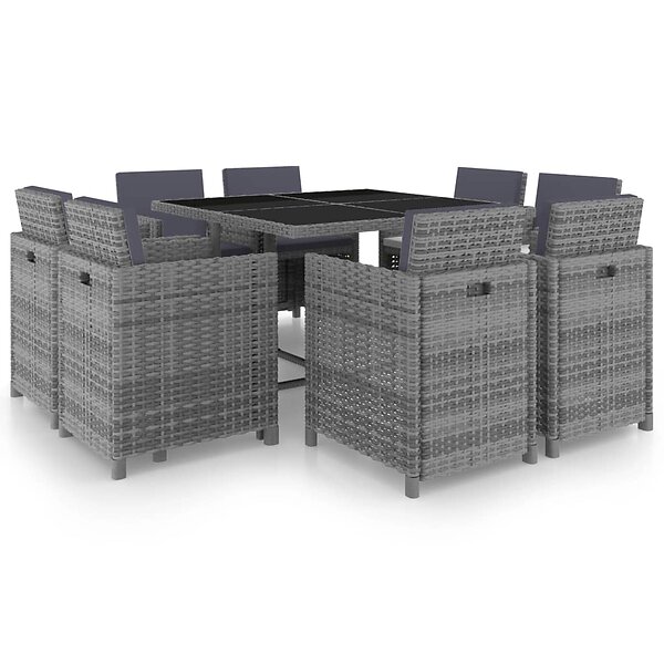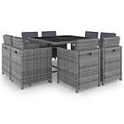 vidaXL Matgrupp för trädgården med dynor 9 delar PE-rotting antracit