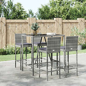 vidaXL Bargrupp för trädgården 5 delar med dynor grå konstrotting