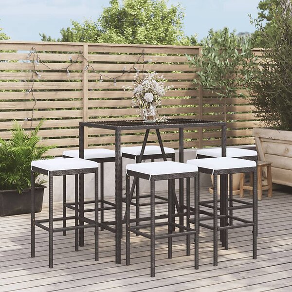 vidaXL Bargrupp för trädgården 7 delar med dynor konstrotting svart