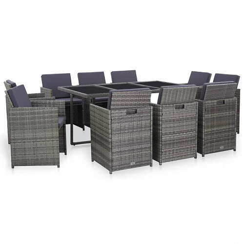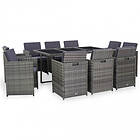 vidaXL Spisebordssæt 11 dele med hynder Grå Poly Rattan