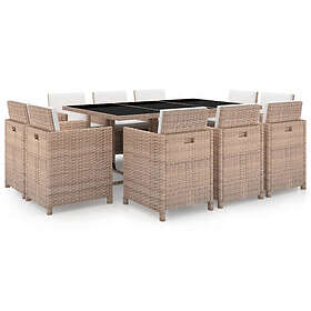 vidaXL Spisebordssæt 11 Dele med Hynder Rattan Beige