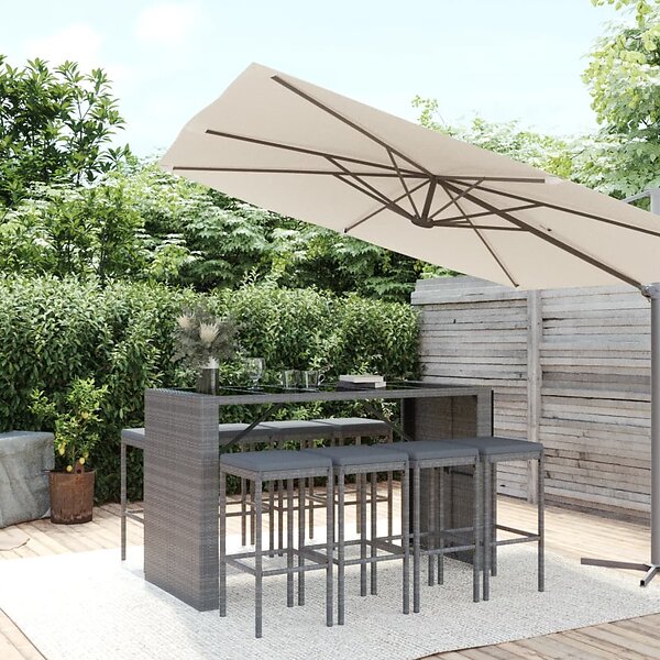 vidaXL Bargrupp för trädgården 9 delar med dynor grå konstrotting