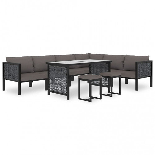 vidaXL Loungegrupp 9 delar med dynor konstrotting antracit