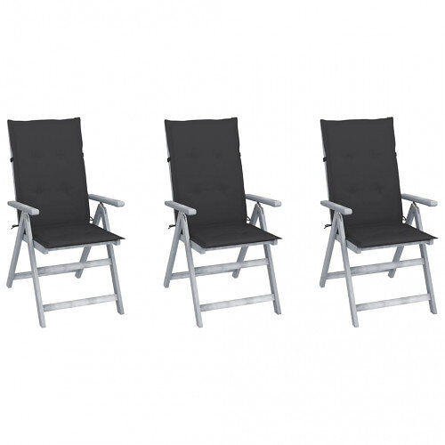 vidaXL Justerbara trädgårdsstolar med dynor 3 st massivt akaciaträ 3064728