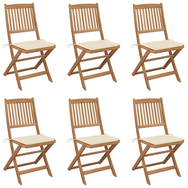 vidaXL Hopfällbara trädgårdsstolar med dynor 6 st massivt akaciaträ 3065490