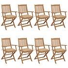 vidaXL Hopfällbara trädgårdsstolar med dynor 8 st massivt akaciaträ 3074985