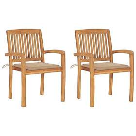 vidaXL Trädgårdsstolar 2 st med beige dynor massivt teakträ 3063255