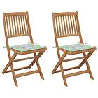 vidaXL Hopfällbara trädgårdsstolar med dynor 2 st massivt akaciaträ 3064656