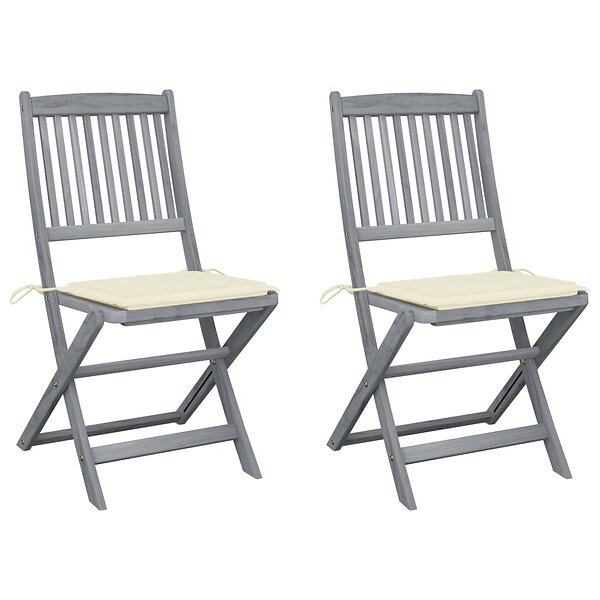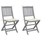 vidaXL Hopfällbara trädgårdsstolar med dynor 2 st massivt akaciaträ 3064538