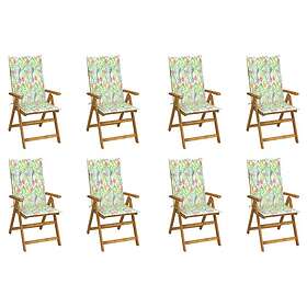 vidaXL Hopfällbara trädgårdsstolar med dynor 8 st massivt akaciaträ 3075066