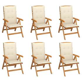 vidaXL Justerbara trädgårdsstolar med dyna 6 st massiv teak 3072662
