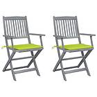 vidaXL Hopfällbara trädgårdsstolar med dynor 2 st massivt akaciaträ 3064493