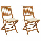 vidaXL Hopfällbara trädgårdsstolar med dynor 2 st massivt akaciaträ 3064646