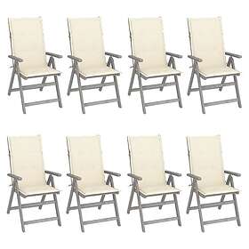 vidaXL Justerbara trädgårdsstolar med dynor 8 st grå akaciaträ 3075143