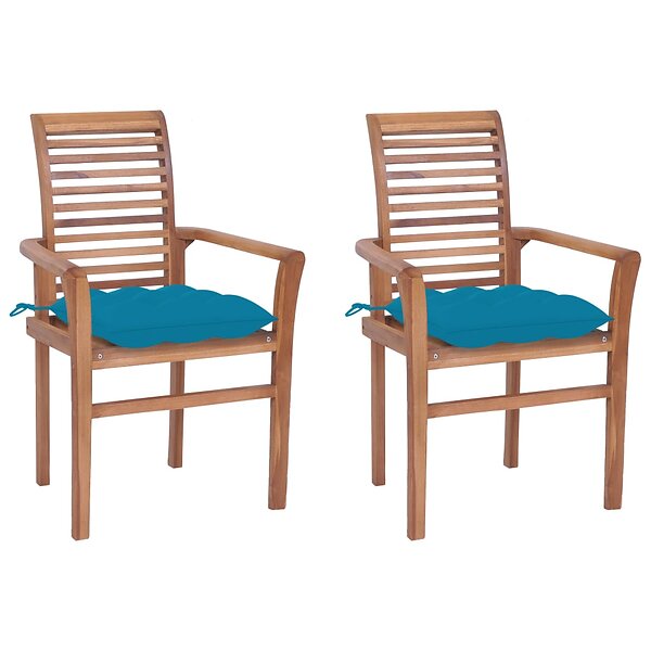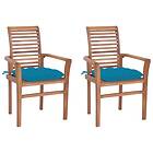 vidaXL Matstolar 2 st med ljusblåa dynor massiv teak 3062614
