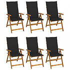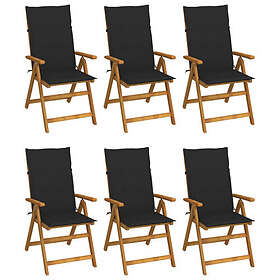 vidaXL Hopfällbara trädgårdsstolar med dynor 6 st massivt akaciaträ 3064126