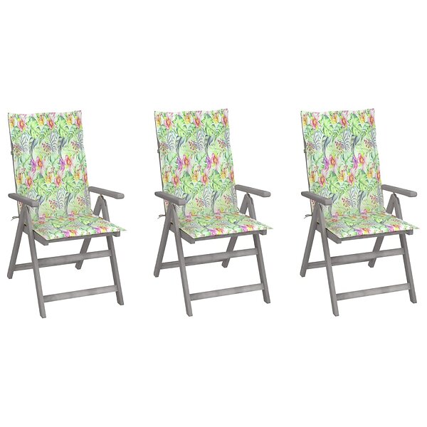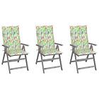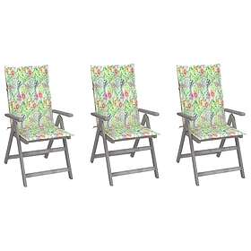 vidaXL Justerbara trädgårdsstolar med dynor 3 st massivt akaciaträ 3064740