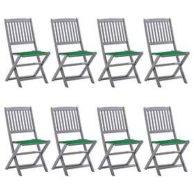 vidaXL Hopfällbara trädgårdsstolar 8 st med dynor massivt akaciaträ 3078295