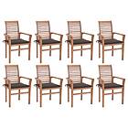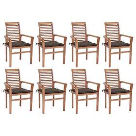 vidaXL Matstolar 8 st med taupe dynor massiv teak 3072981