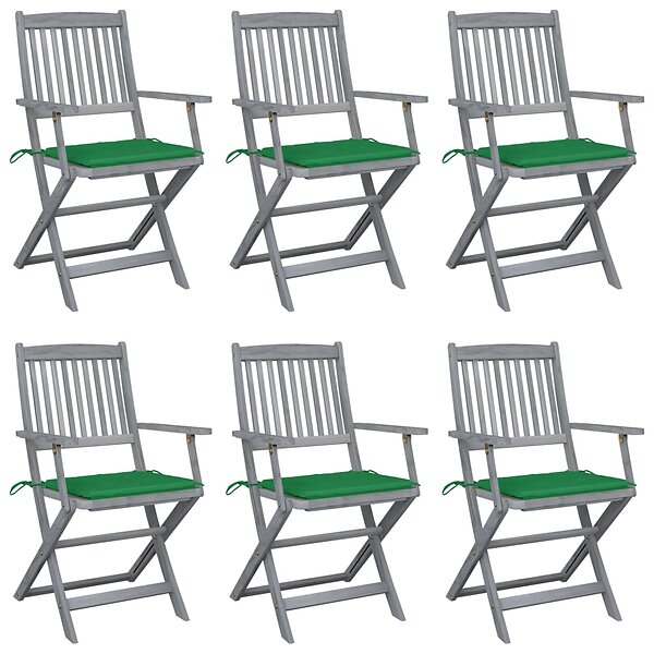 vidaXL Hopfällbara trädgårdsstolar 6 st med dynor massivt akaciaträ 3065412