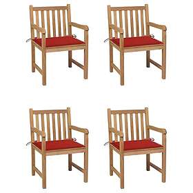 vidaXL Trädgårdsstolar med röda dynor 4 st massiv teak 3073010