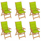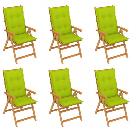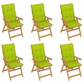 vidaXL Trädgårdsstolar 6 st med ljusgröna dynor massiv teak 3065586