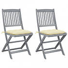 vidaXL Foldbare havestole med hynder sæt af 2 massivt akacietræ 3064553