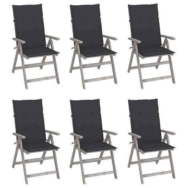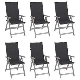 vidaXL Justerbara trädgårdsstolar med dynor 6 st massivt akaciaträ 3065317