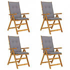 vidaXL Justerbara trädgårdsstolar med dynor 4 st massivt akaciaträ 3065363