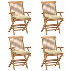 vidaXL Havemøbler med cremefarvede hynder Sæt af 4 massivt teaktræ 3065634