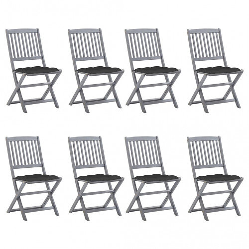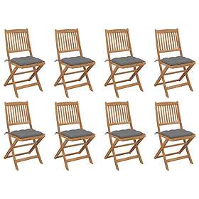 vidaXL Sæt af 8 Foldbare havestole med hynder Massivt akacietræ 3078305