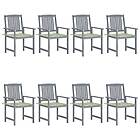vidaXL Trädgårdsstolar med dynor 8 st massivt akaciaträ grå 3078234
