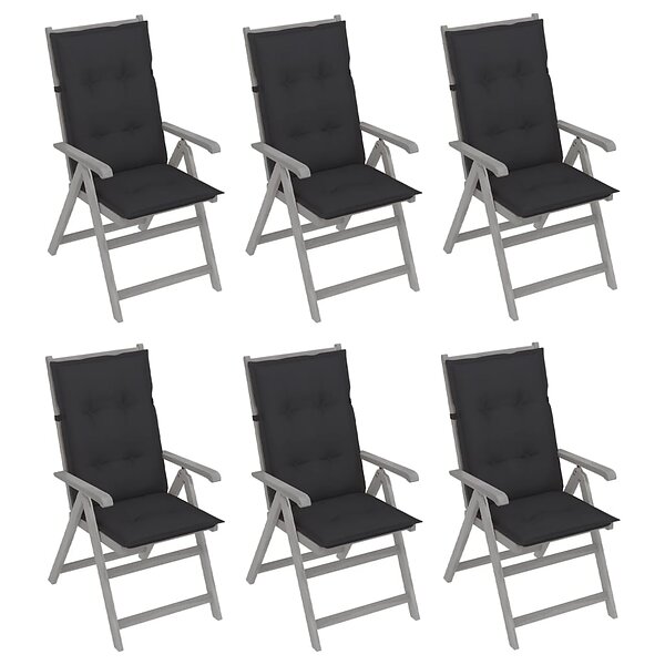 vidaXL Justerbara trädgårdsstolar med dynor 6 st massivt akaciaträ 3065332