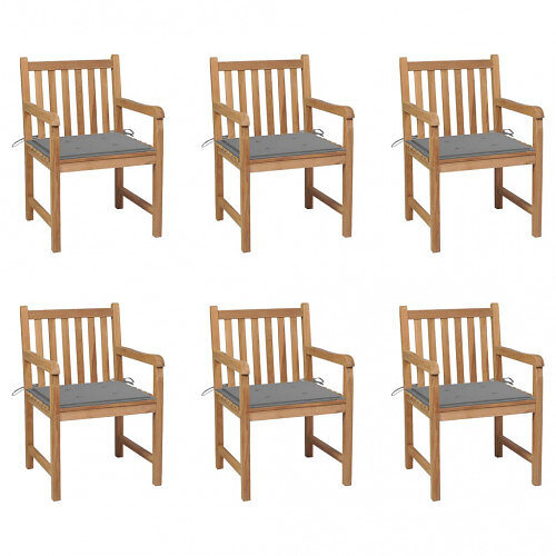 vidaXL Trädgårdsstolar 6 st med gråa dynor massiv teak 3073032