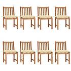 vidaXL Trädgårdsstolar 8 st med dynor massiv teak 3073159