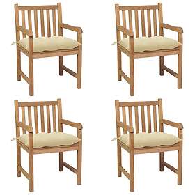 vidaXL Trädgårdsstolar med gräddvita dynor 4 st massiv teak 3073021
